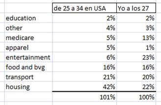 Uncategorized personal budget management Posted on September 19, 2012 by joachin Comparacion de mi presupuesto a los 27 versus la investigacion de JPMorgan en Estados Unidos, por edad: Estoy gastando más en medicare y entretenimiento. Share this: Click to share on Facebook (Opens in new window) Facebook Click to share on X (Opens in new window) X Like Loading... Related
