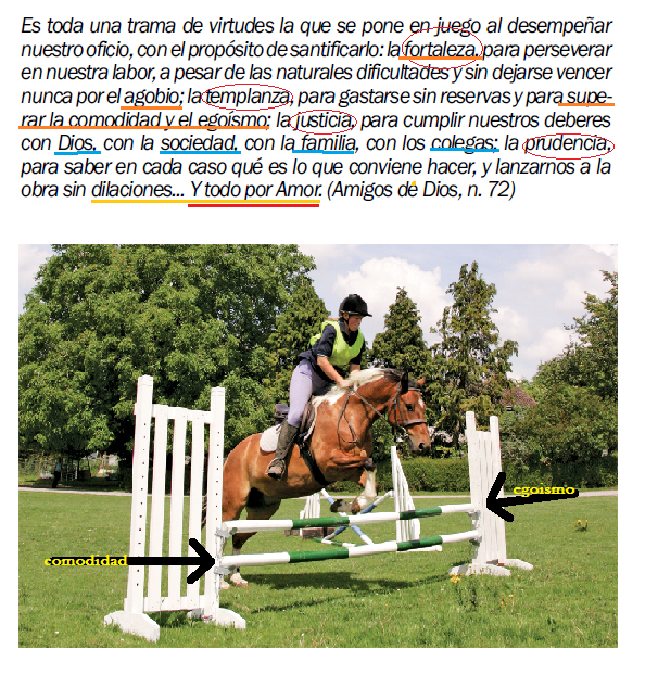 Para que Dios me ayude a desarrollar las virtudes cristianas, en medio del trabajo, y a madurar espiritualmente, por el mode de realizarlo. Que procure ser paciente y comprensivo, tanto con los jees como con los colegas y subordinados; que sea sencillo y humilde, huyendo de la vanidad y del exhibicionismo; que lo haga todo, en una palabra, con pureza de corazon.